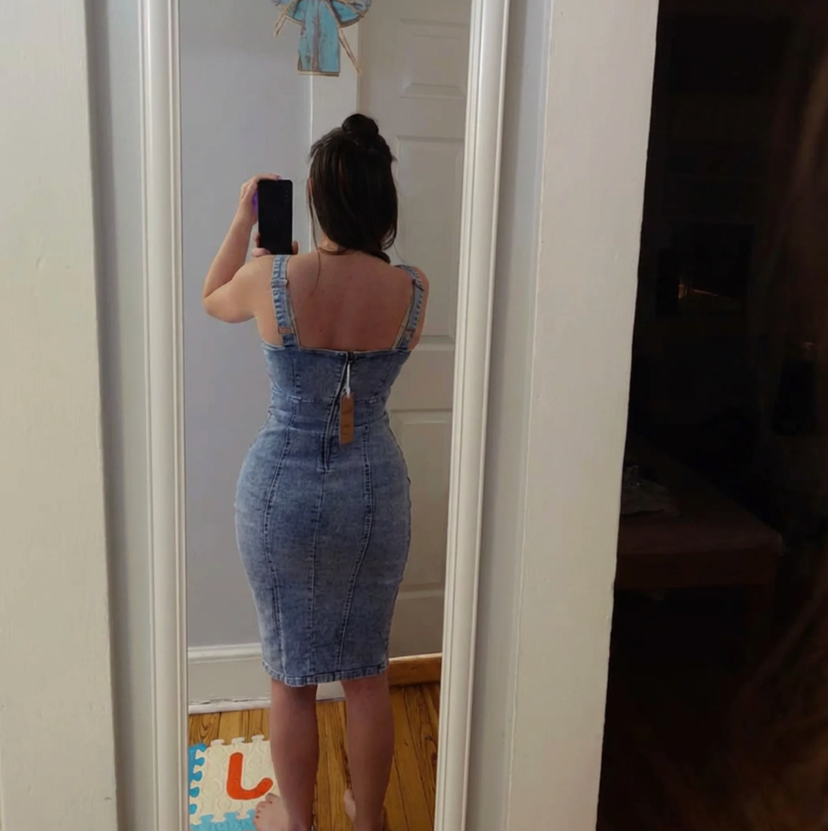 Yes! The dress is made with stretch denim that moves with your body, giving you a comfortable fit while still hugging your curves.
